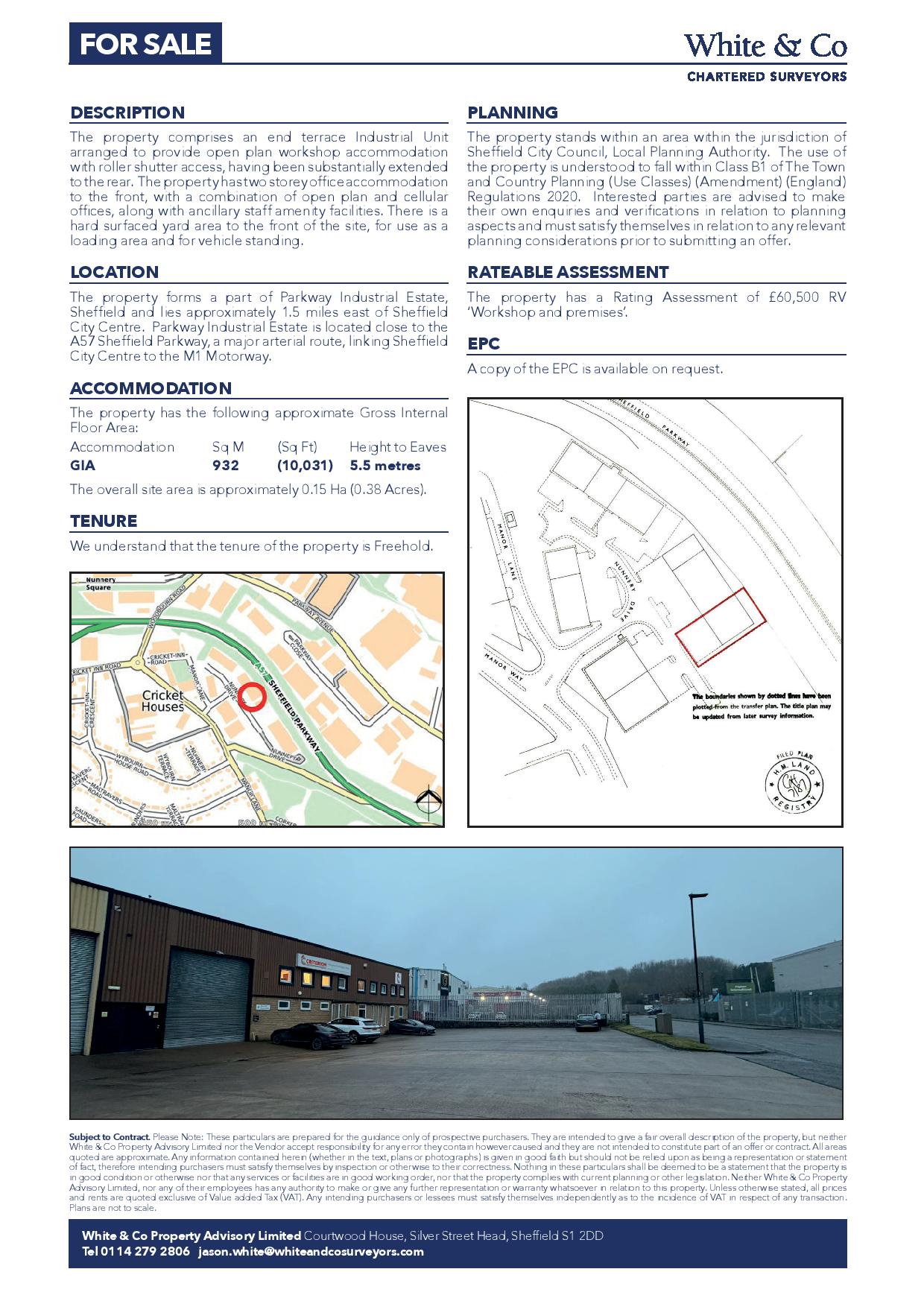 For Sale – Unit 3c Nunnery Drive, Parkway Industrial Estate, Sheffield, S2 1TA